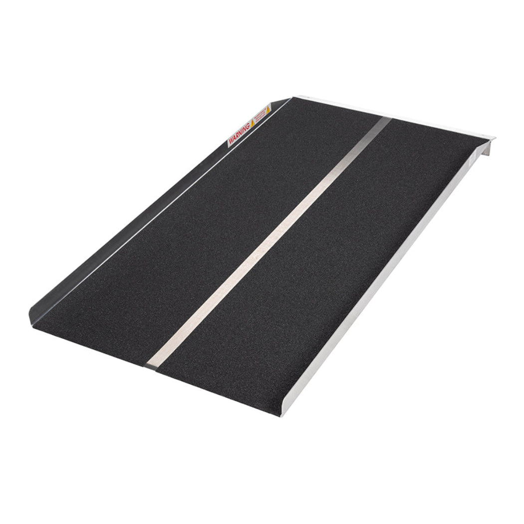 Elevate your mobility with the PVI Solid Aluminum Ramp. Made from lightweight aluminum, this ramp provides easy access for wheelchairs and scooters. With a weight capacity of 800 lbs and several lengths options, say goodbye to obstacles with this reliable solid ramp.